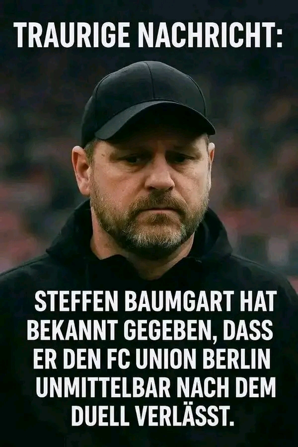 🚨💥 UNION IM SCHOCK! Die Alte Försterei steht still, als hätte jemand plötzlich den Stecker gezogen. Steffen Baumgart, der emotionale Antreiber, der Mann mit der Mütze, der Lautsprecher an der Seitenlinie, ist weg. Völlig überraschend tritt der Kulttrainer zurück – ein Schritt, der Union Berlin unvorbereitet trifft und eine Welle der Fassungslosigkeit durch den gesamten Klub jagt. Noch vor Kurzem wurde er als Hoffnungsträger gefeiert, als Gesicht des Aufbruchs, als Symbol für Leidenschaft und Kampfgeist. Jetzt bleibt vor allem eines zurück: Leere.