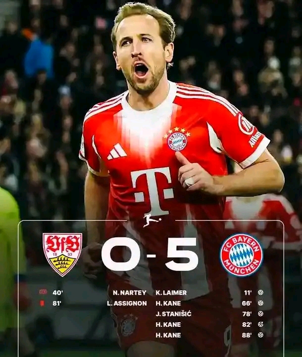 Der FC Bayern hat in Stuttgart ein eindrucksvolles Zeichen gesetzt und die Gastgeber mit einem klaren 5:0-Sieg regelrecht überrollt. Im Mittelpunkt stand erneut Harry Kane, der mit seinem späten Hattrick die Partie endgültig entschied und damit seine unglaubliche Torserie fortsetzte. Obwohl Kane erst in der 60. Minute eingewechselt wurde, prägte er das Spiel in einer Art und Weise, die selbst für einen Ausnahmestürmer bemerkenswert wirkt.