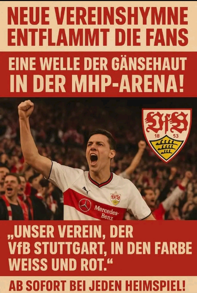 Die Vorstellung der neuen Vereinshymne des VfB Stuttgart hat die Herzen der Anhänger wie ein Donnerhall getroffen – kraftvoll, emotional, unvergesslich. Was zunächst wie eine gewöhnliche Ankündigung wirkte, verwandelte sich in kürzester Zeit in einen gemeinsamen Moment voller Leidenschaft. Binnen Sekunden fanden sich Tausende Fans vereint in einer Welle aus Emotion, Stolz und erneuter Identifikation mit ihrem Verein.