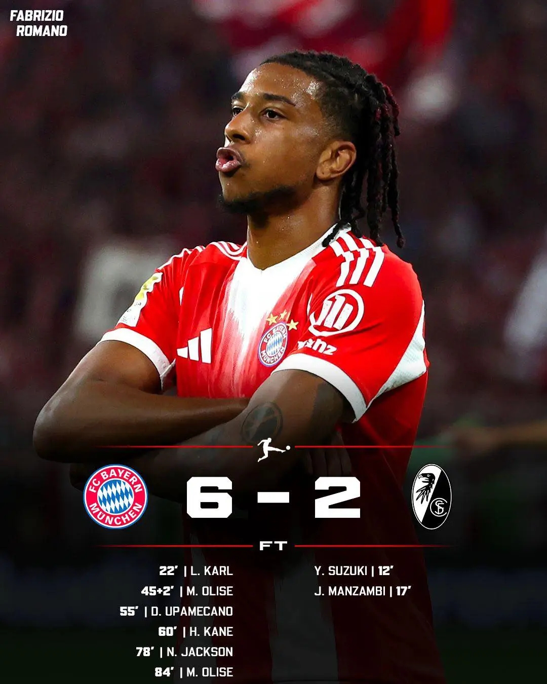 Dieser Sieg ist mehr als nur ein weiterer Eintrag in der Tabelle. Er sendet eine Botschaft an ganz Europa: Bayern ist zurück – gefährlicher, unberechenbarer und hungriger denn je. Und wenn Michael Olise in dieser Form bleibt, könnte er sich in Rekordzeit zu einem der prägendsten Spieler der gesamten Saison entwickeln. Seine Leistung gegen diesen Gegner war nicht nur ein Ausrufezeichen, sondern beinahe ein Versprechen: Bayern hat einen neuen Superstar, und mit ihm ist jedes Spiel zu gewinnen.