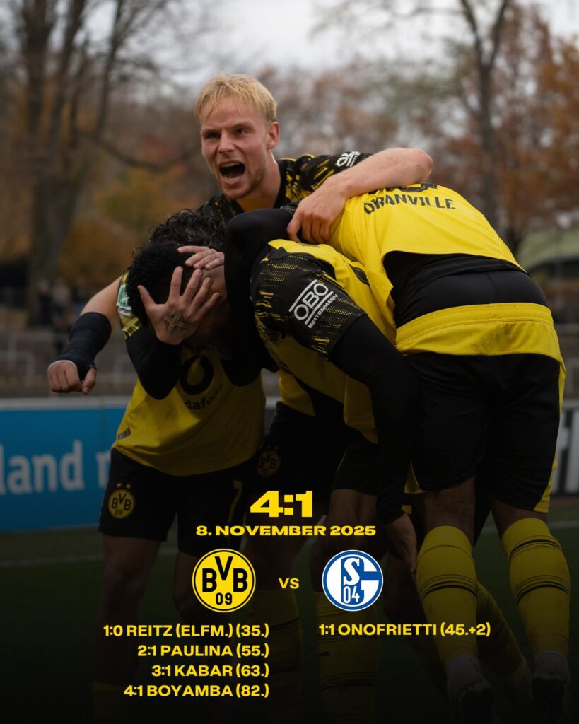 Ganz Deutschland feierte am 8. November 2025, als die U23 von Borussia Dortmund mit einem beeindruckenden 4:1-Sieg über den Erzrivalen FC Schalke 04 U23 glänzte. Was als leidenschaftliches Ruhrderby begann, wurde schnell zu einem nationalen Moment des Stolzes, denn die jungen Schwarz-Gelben zeigten nicht nur spielerische Klasse, sondern auch das enorme Potenzial des deutschen Fußballs.